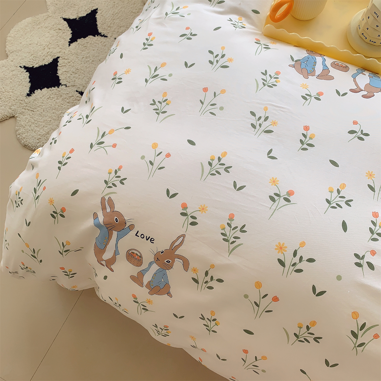 Öğle yemeği tavşan yatak tabakası kapak yatak yastık kılıfı seti, herhangi bir yatak odasına keyifli ve büyüleyici bir katkıdır. Desen türü, alanınıza kesinlikle neşe getirecek sevimli ve eğlenceli tasarımlara sahip çizgi film. Yüksek kaliteli...